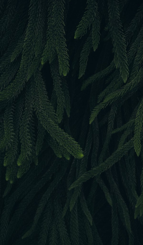 Обои: хвоя, зеленый, черный фон - 600x1024