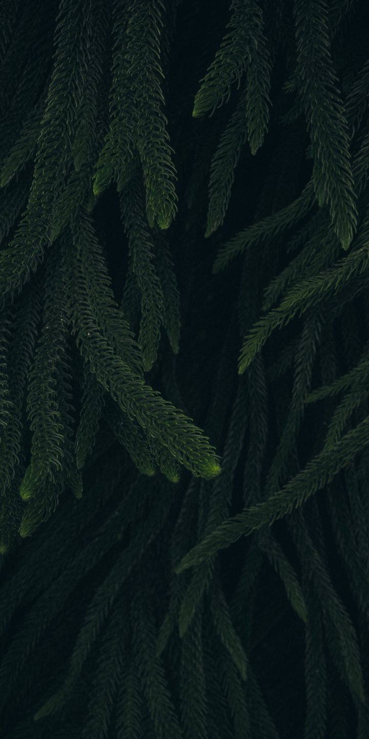 Обои: хвоя, зеленый, черный фон - 720x1440