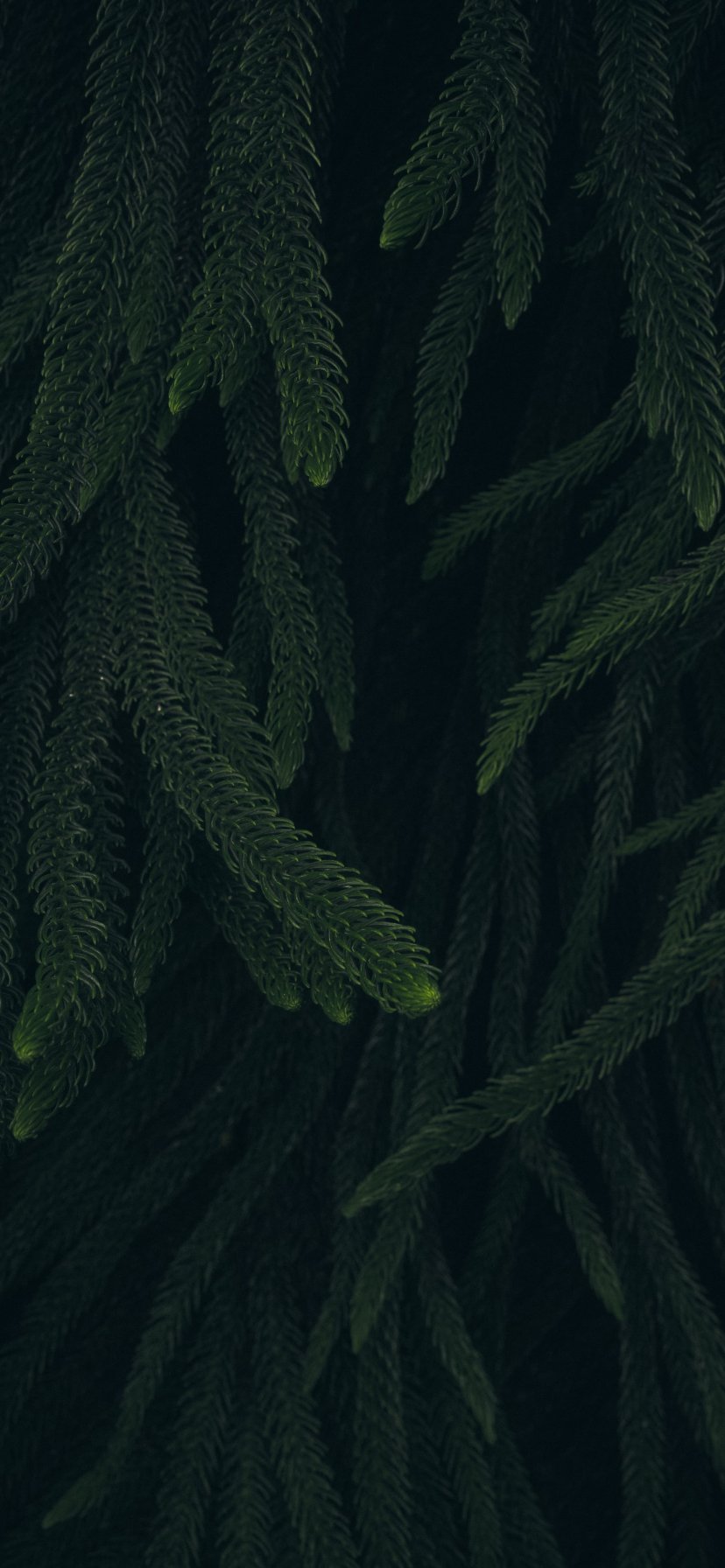 Обои: хвоя, зеленый, черный фон - 828x1792