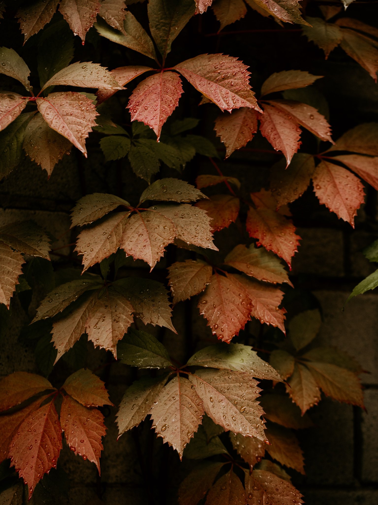 Обои: листва, осень, капли - 1536x2048