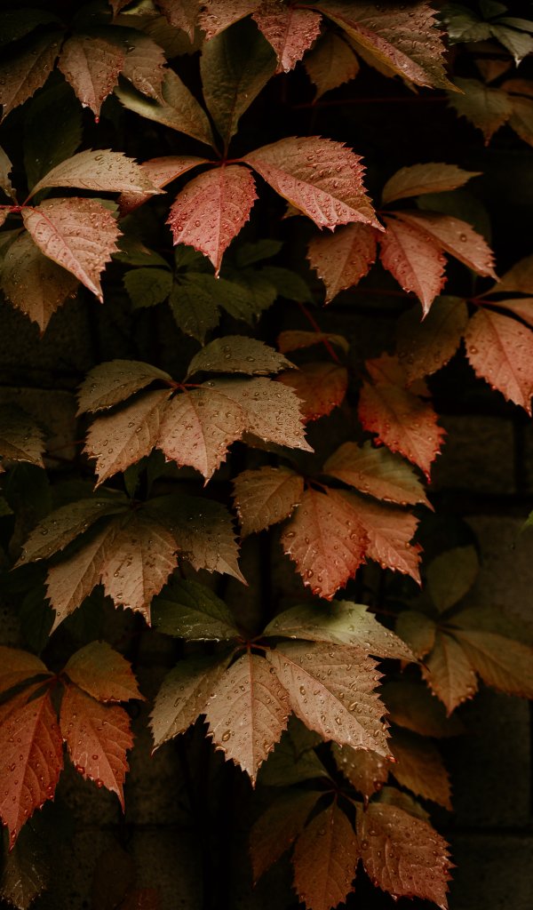 Обои: листва, осень, капли - 600x1024