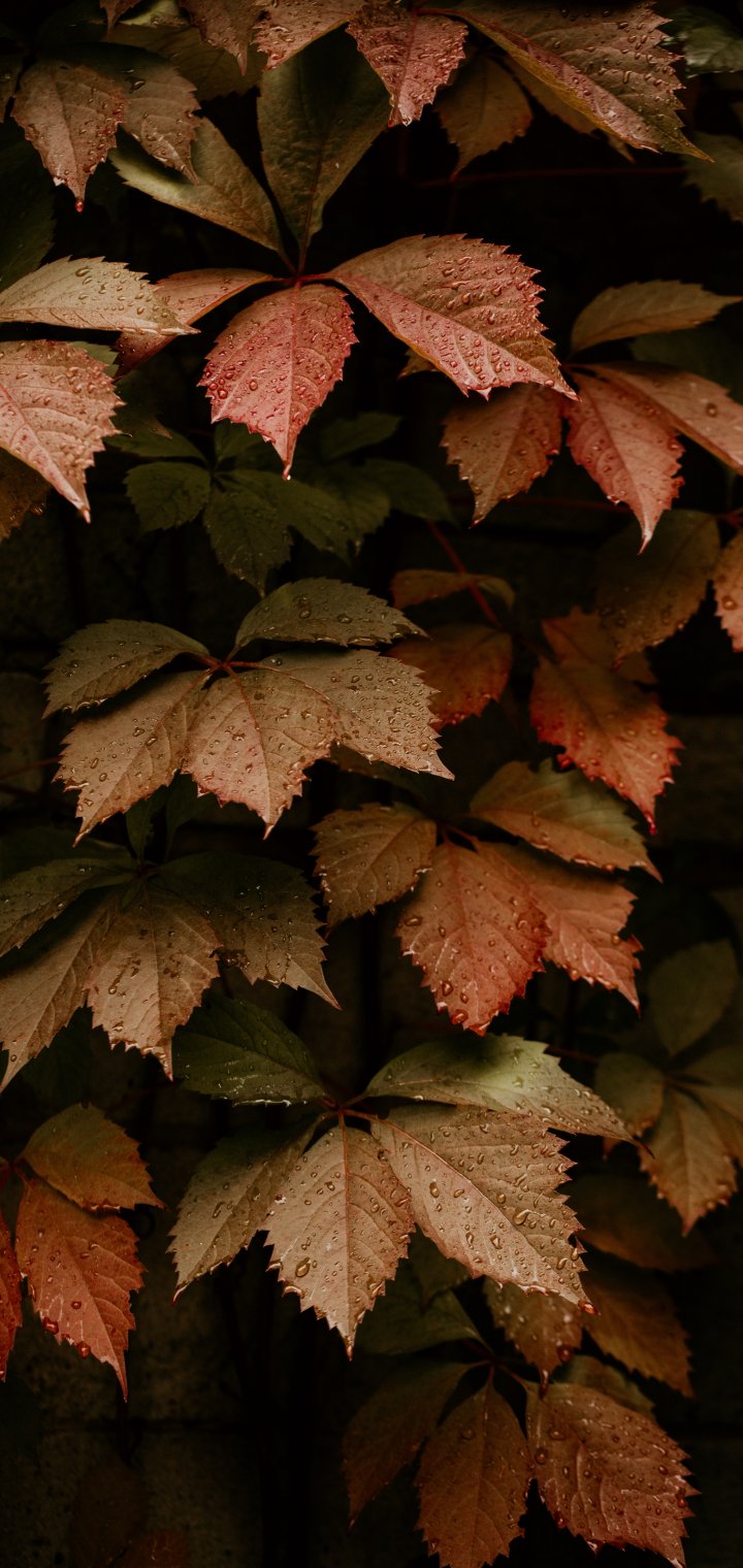Обои: листва, осень, капли - 720x1520