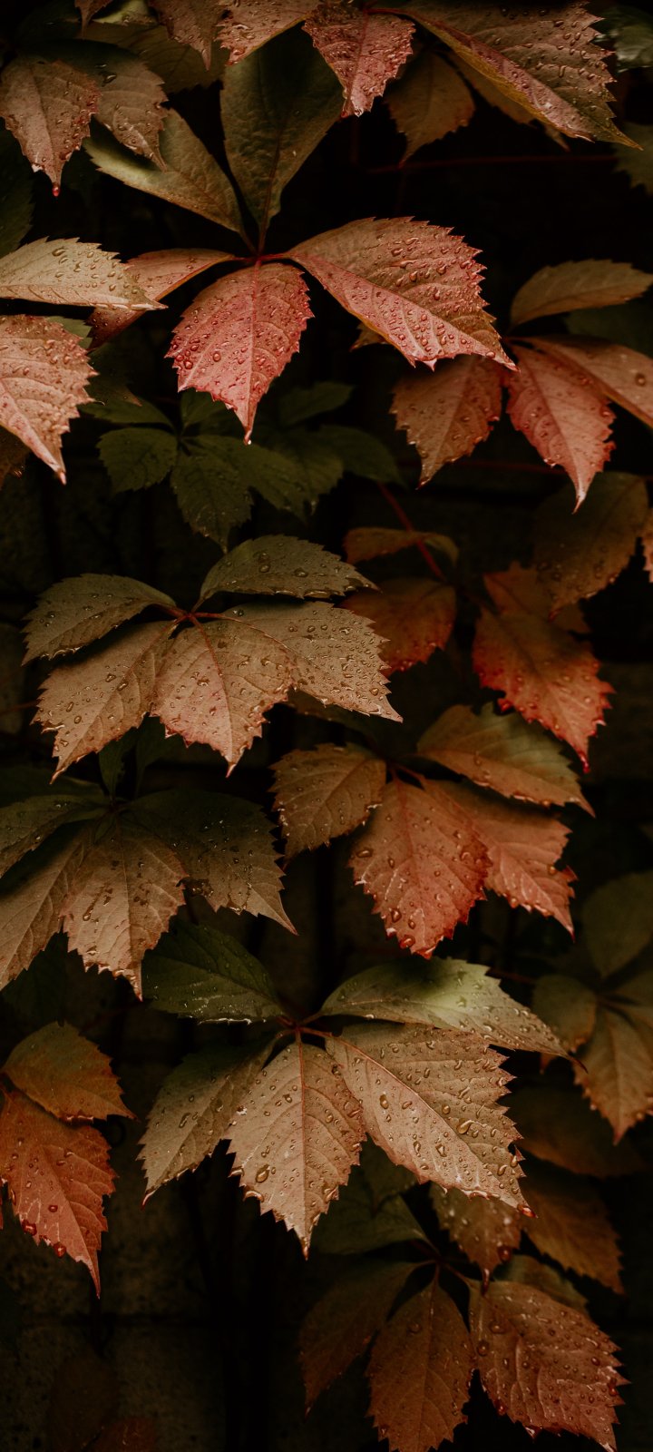 Обои: листва, осень, капли - 720x1600