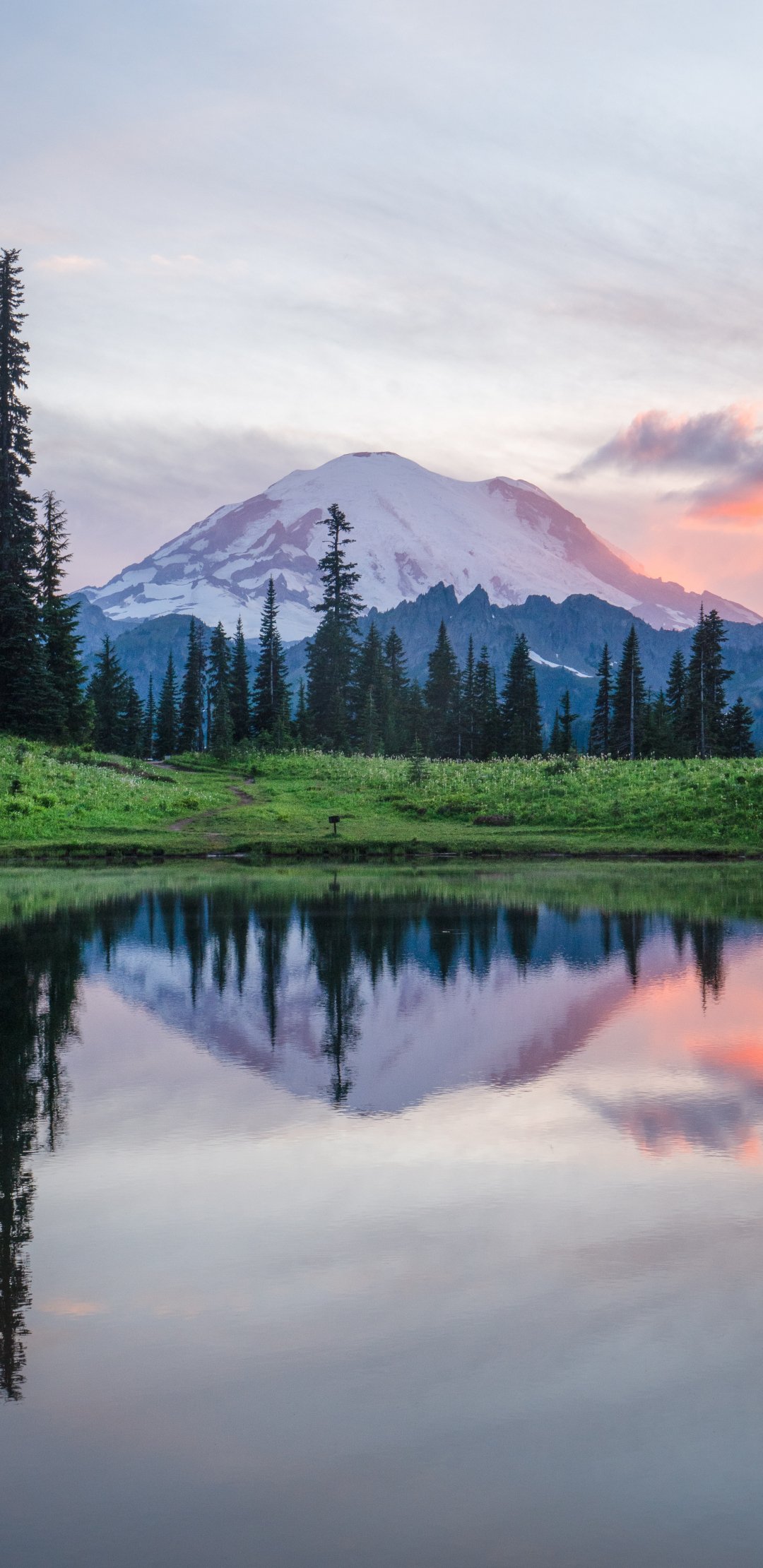 Обои: гора Рейнир, озеро, пейзаж - 1080x2220