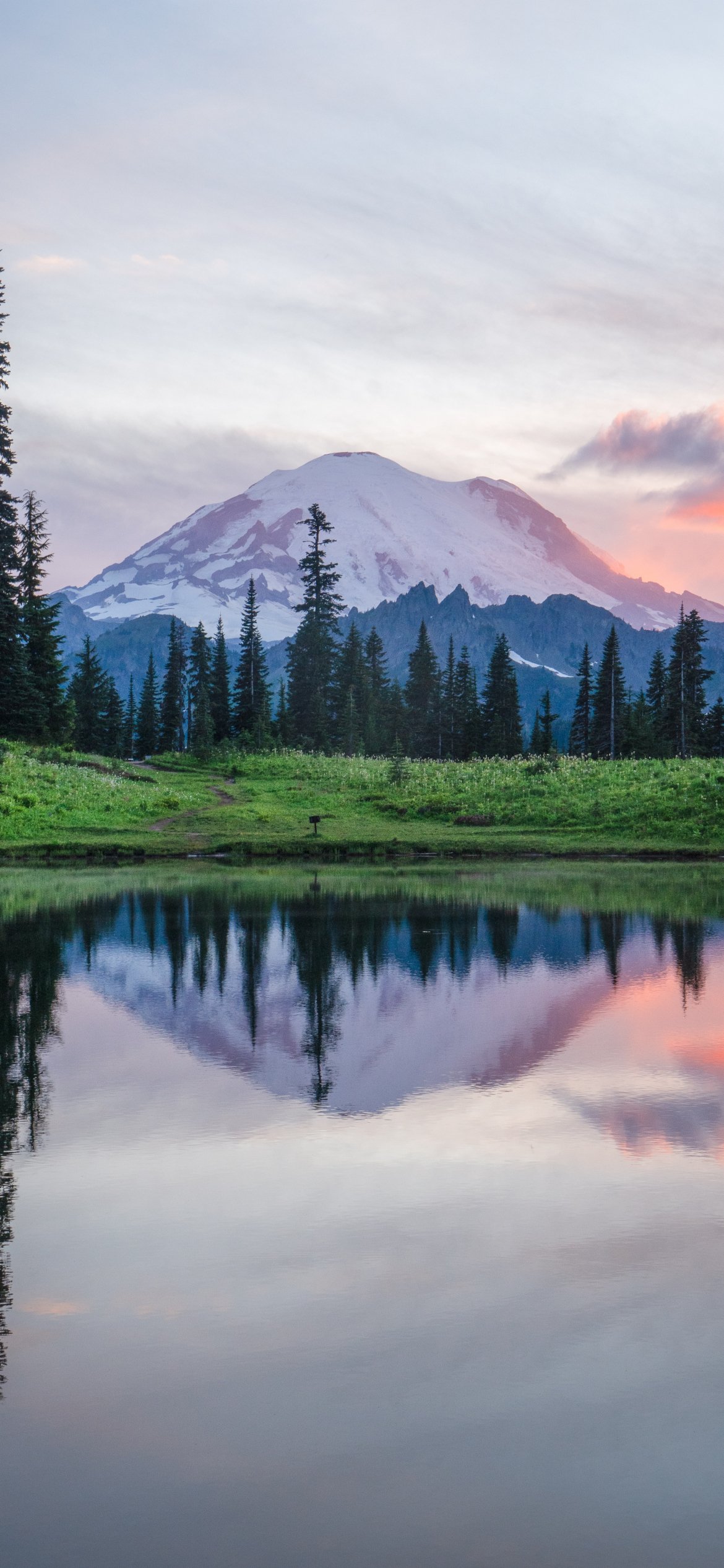 Обои: гора Рейнир, озеро, пейзаж - 1170x2532