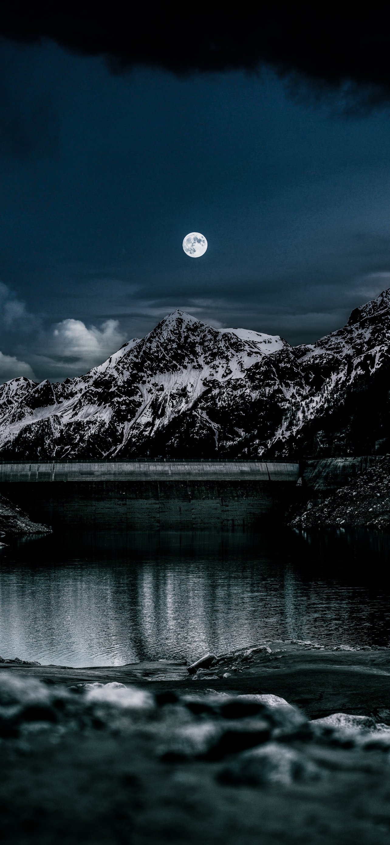 Обои: ночь, луна, озеро - 1284x2778