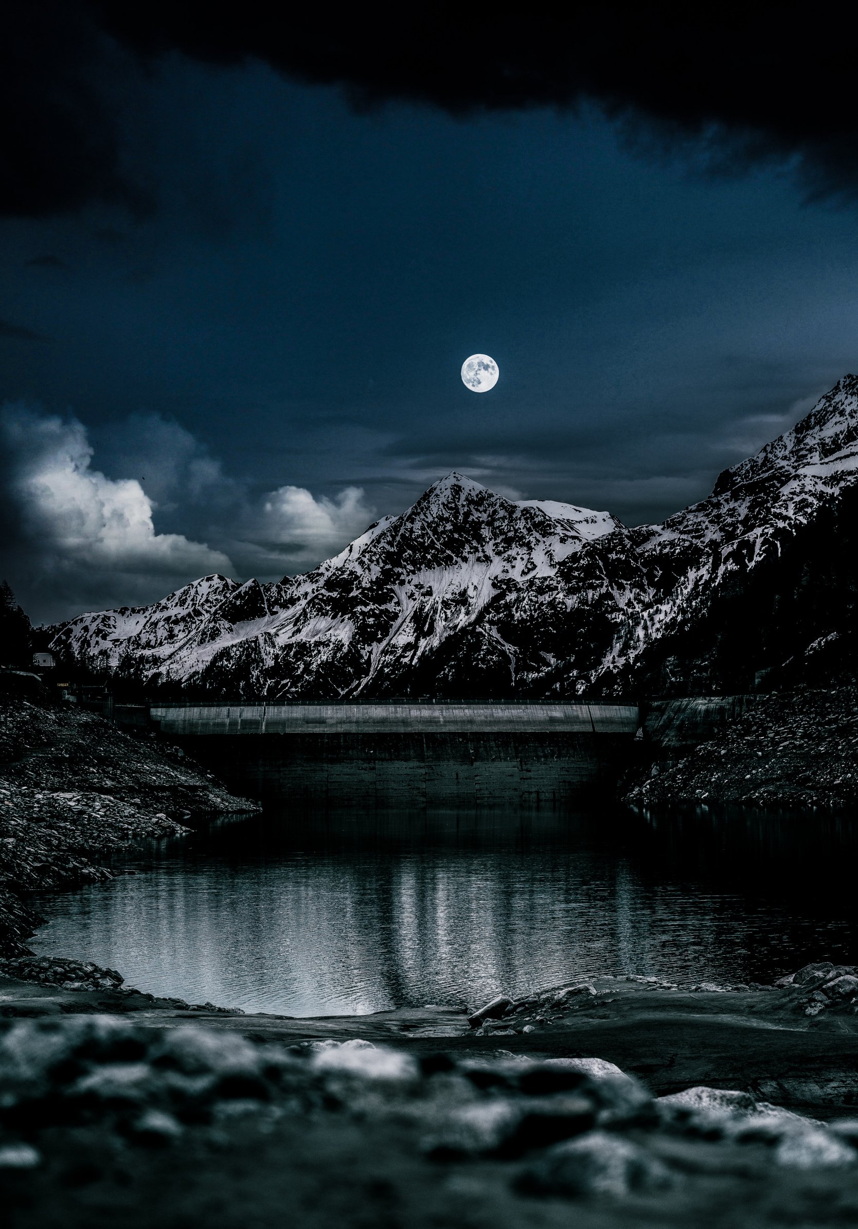 Обои: ночь, луна, озеро - 1668x2388