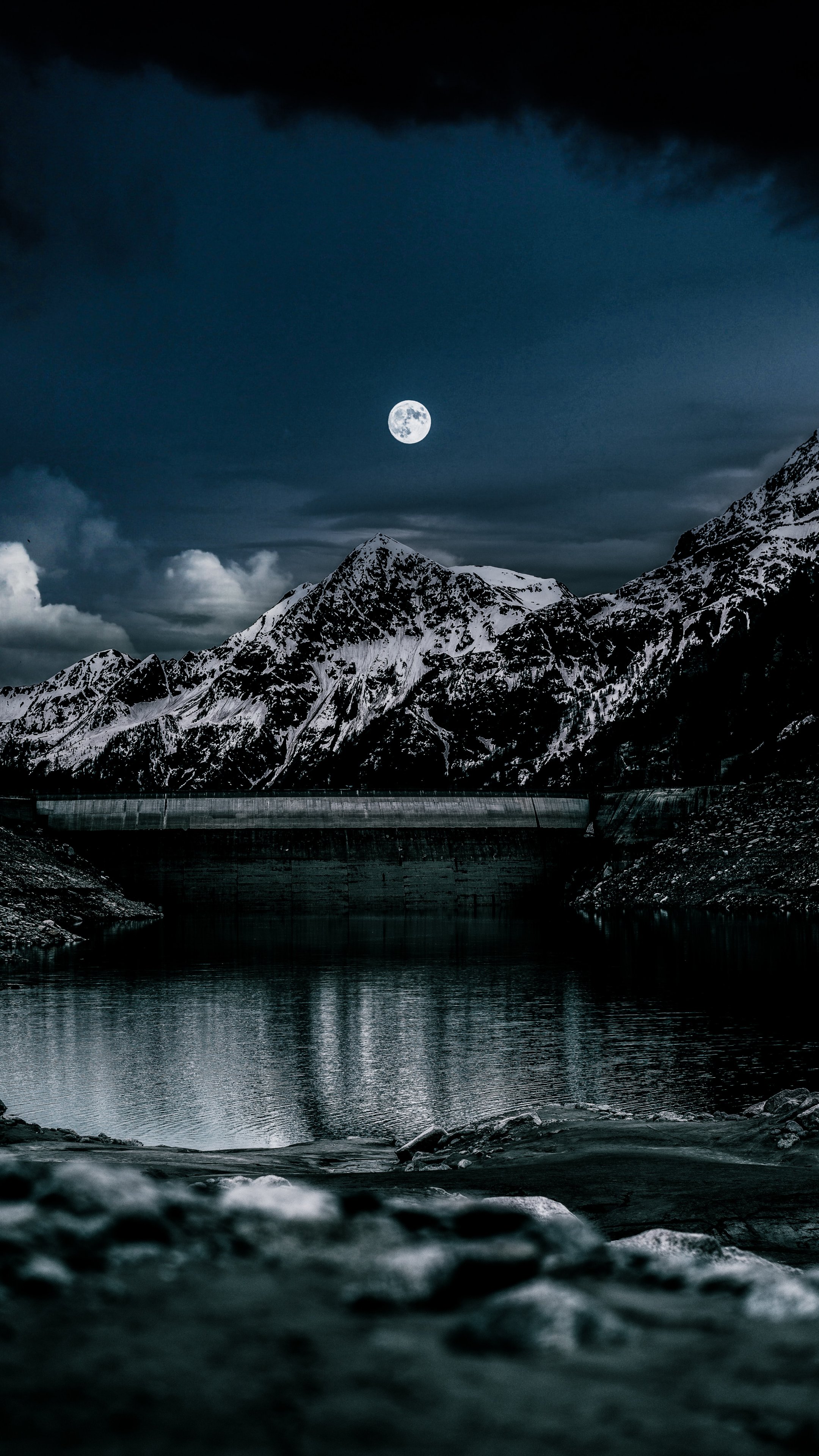 Обои: ночь, луна, озеро - 2160x3840