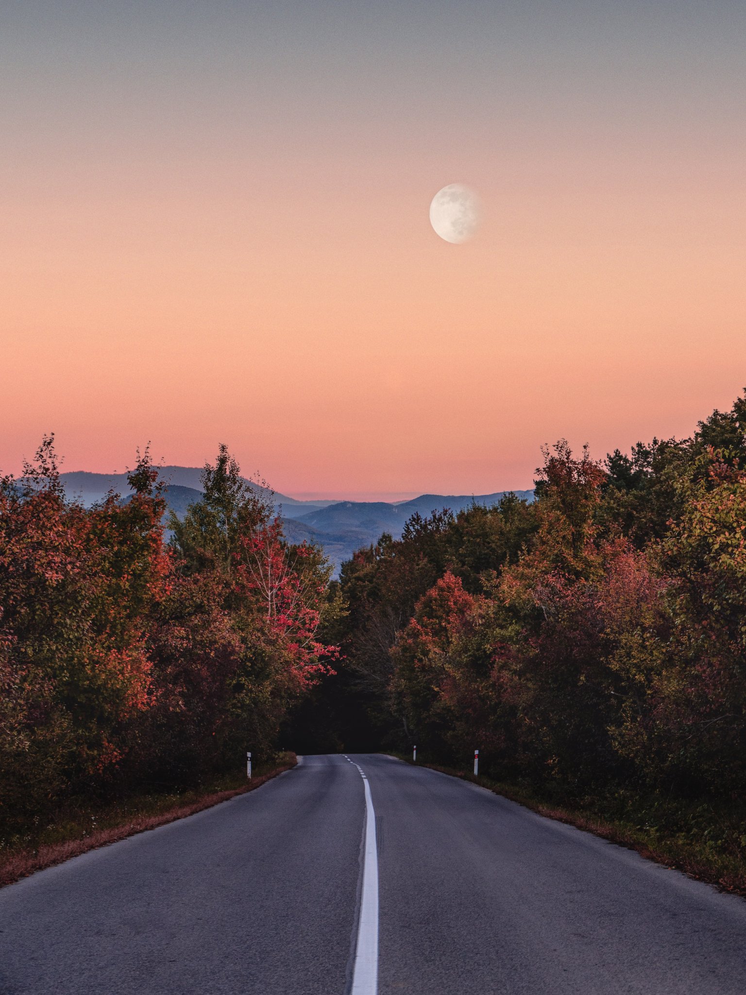 Обои: дорога, лес, вечер - 1536x2048