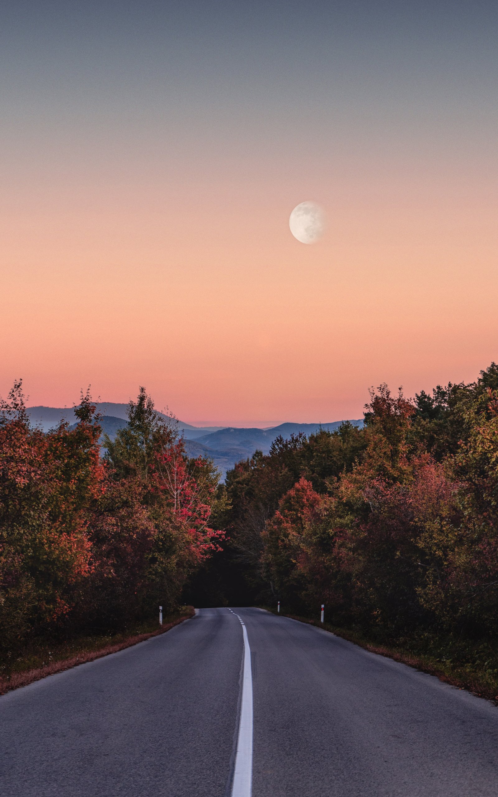 Обои: дорога, лес, вечер - 1600x2560