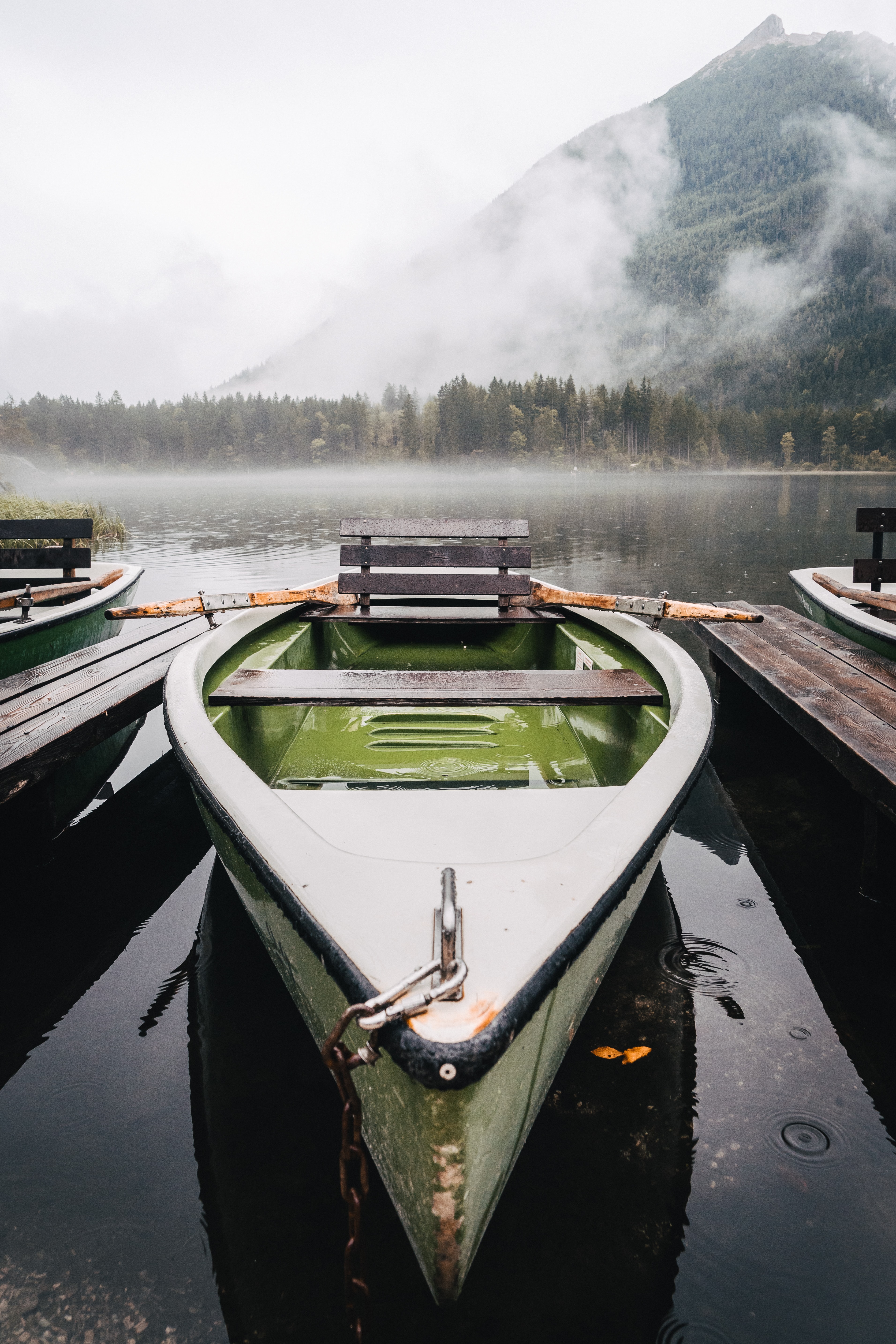 Обои: лодка, озеро, туман, горы - 3824x5736