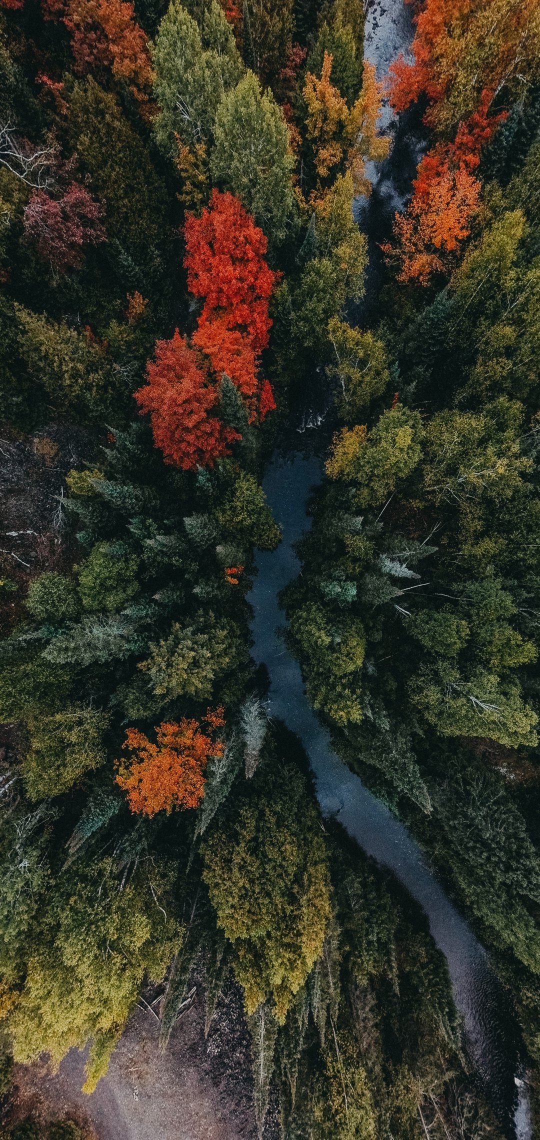 Обои: осенний лес, с высоты птичьего полета - 1080x2280