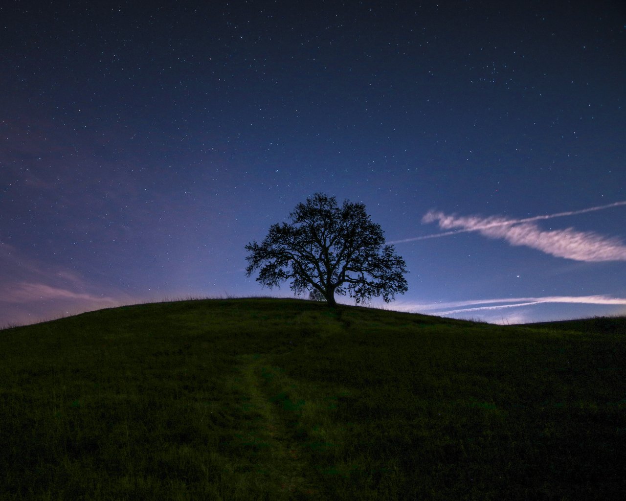 Обои: дерево, звездное небо, ночь - 1280x1024