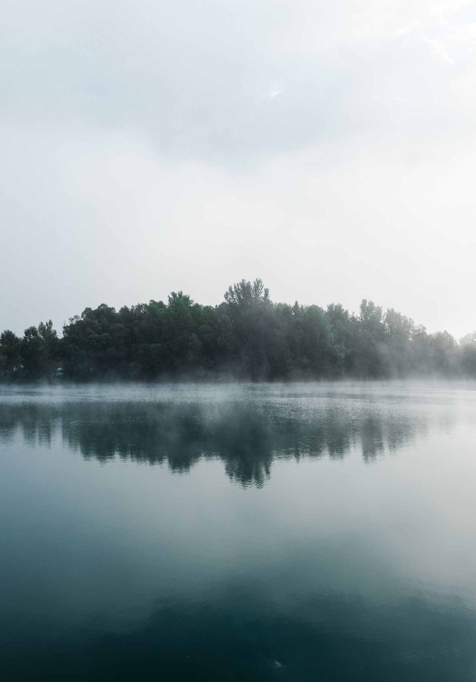 Обои: туман, озеро, лес - 1668x2388