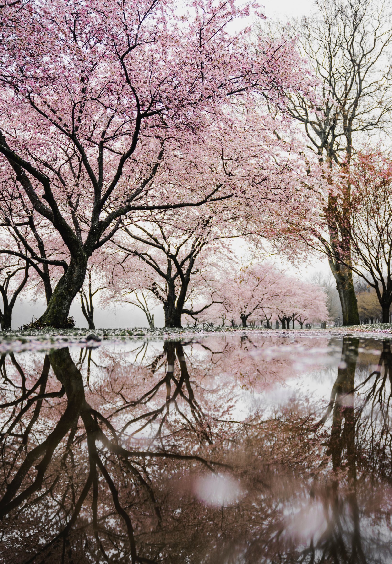 Обои: сакура, Япония, отражение - 1640x2360
