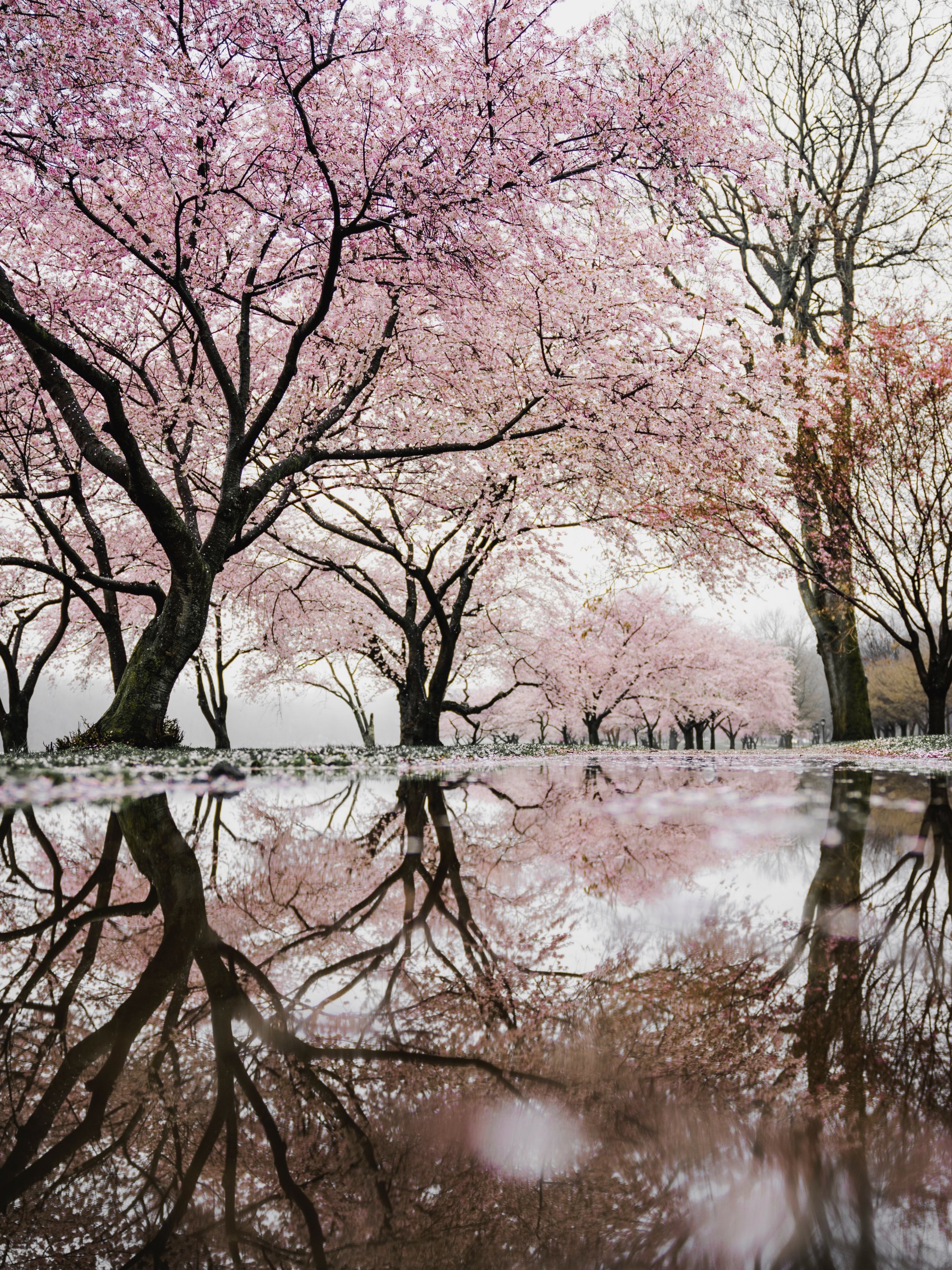 Обои: сакура, Япония, отражение - 2048x2732