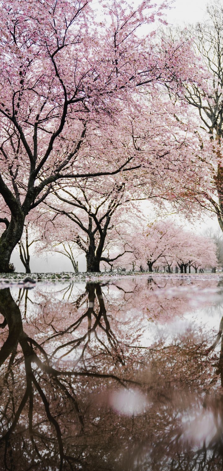 Обои: сакура, Япония, отражение - 720x1520