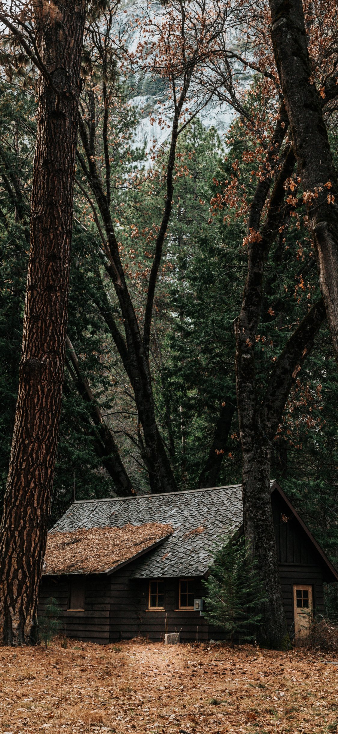 Обои: домик в лесу, хвойный лес - 1125x2436