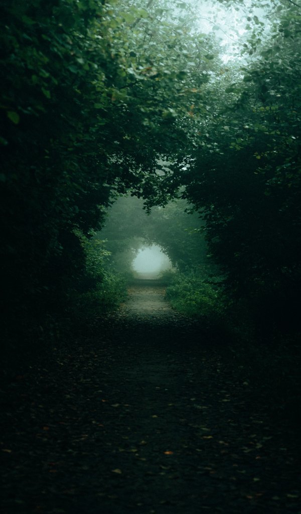Обои: лесная тропа, туман - 600x1024