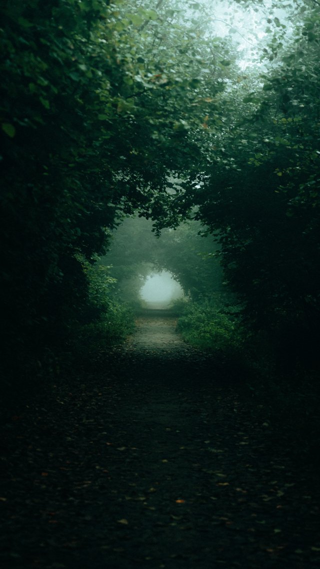Обои: лесная тропа, туман - 640x1136