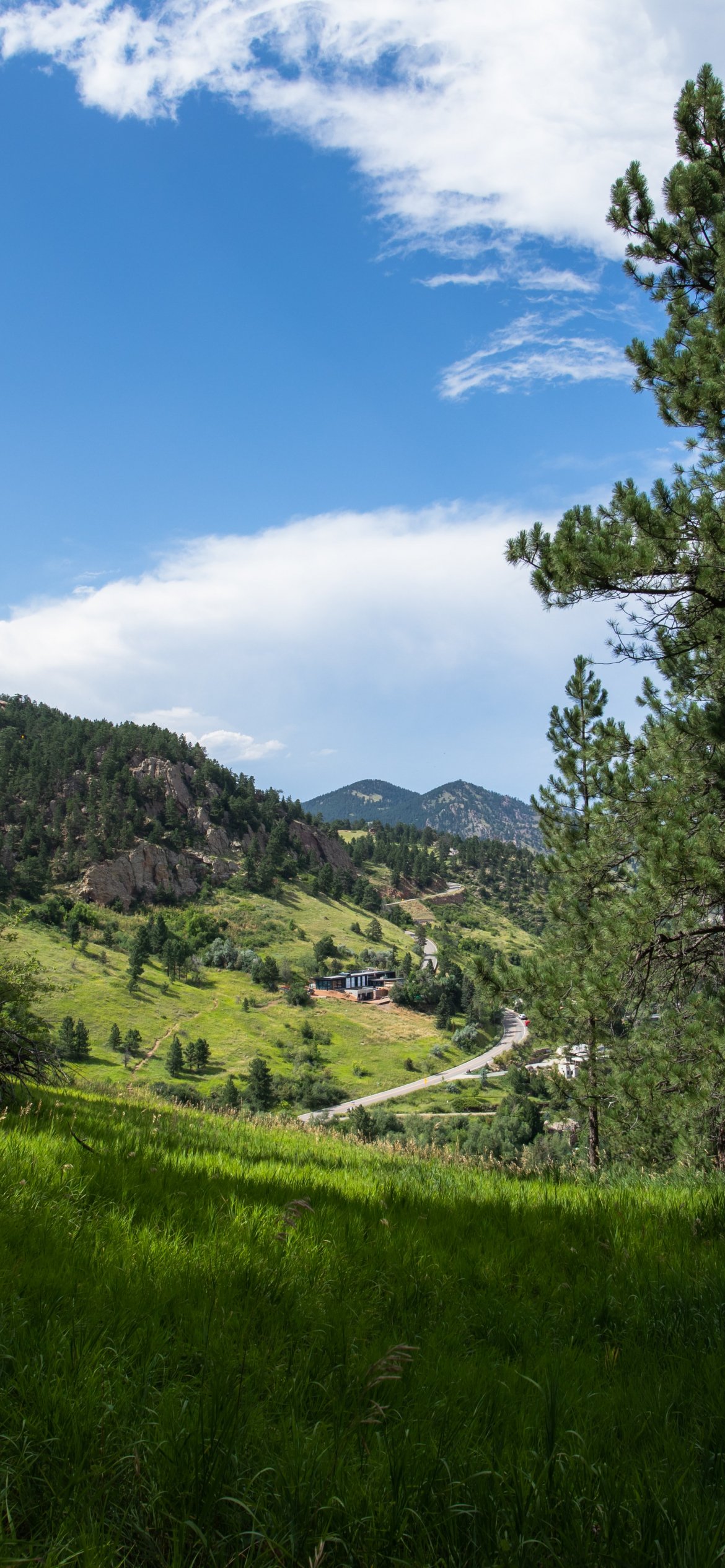 Обои: хвойное дерево, горы - 1170x2532