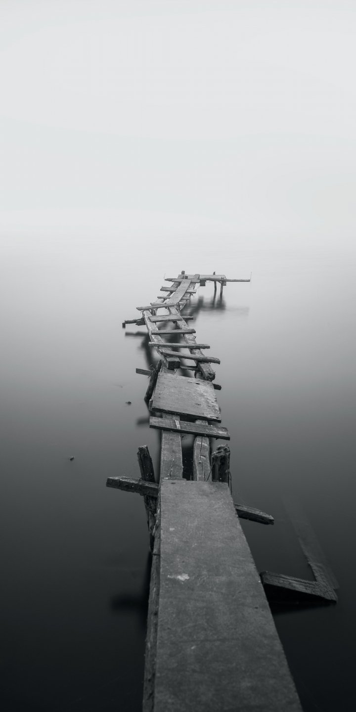 Обои: озеро, мостки, туман - 720x1440