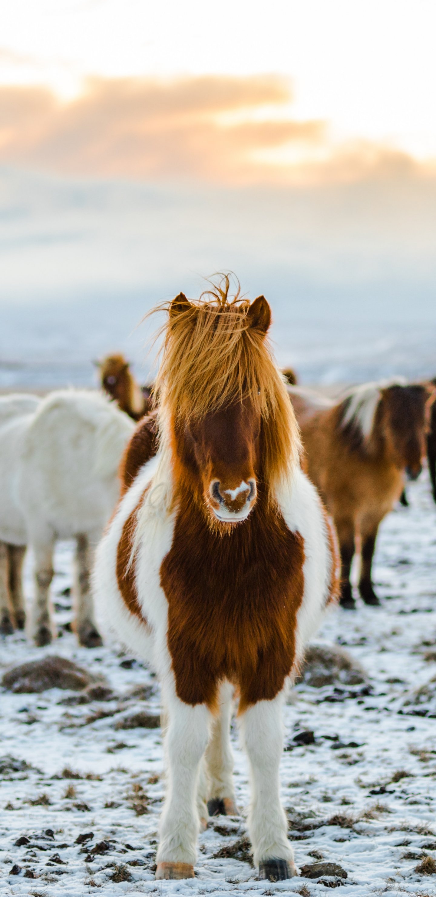 Обои: табун лошадей, горная местность - 1440x2960