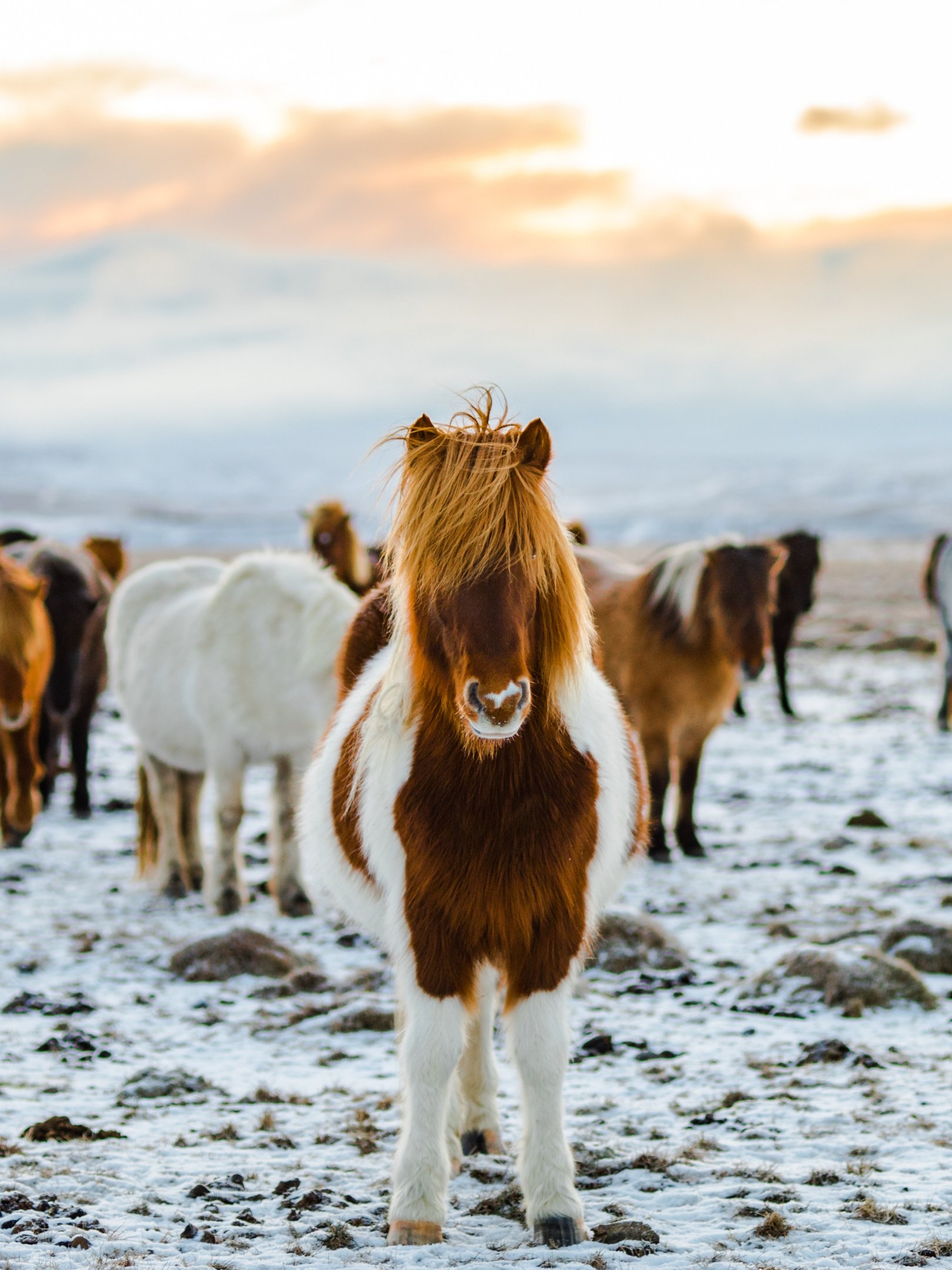 Обои: табун лошадей, горная местность - 1620x2160