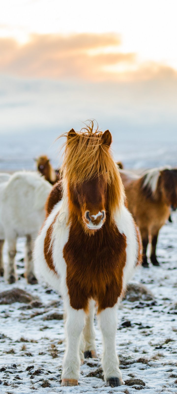 Обои: табун лошадей, горная местность - 720x1600