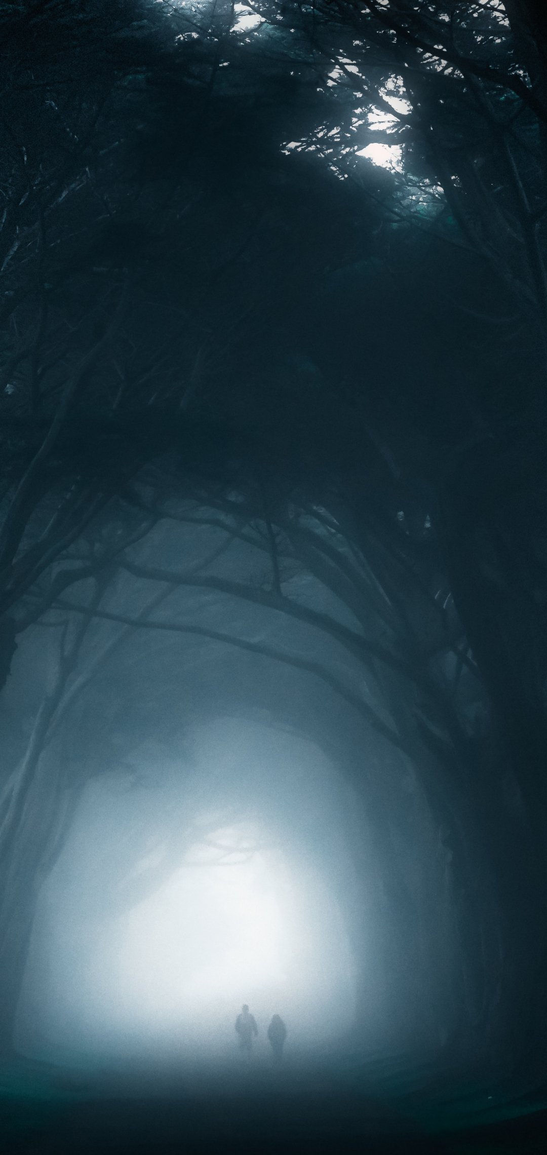 Обои: туман, лесная тропа - 1080x2280