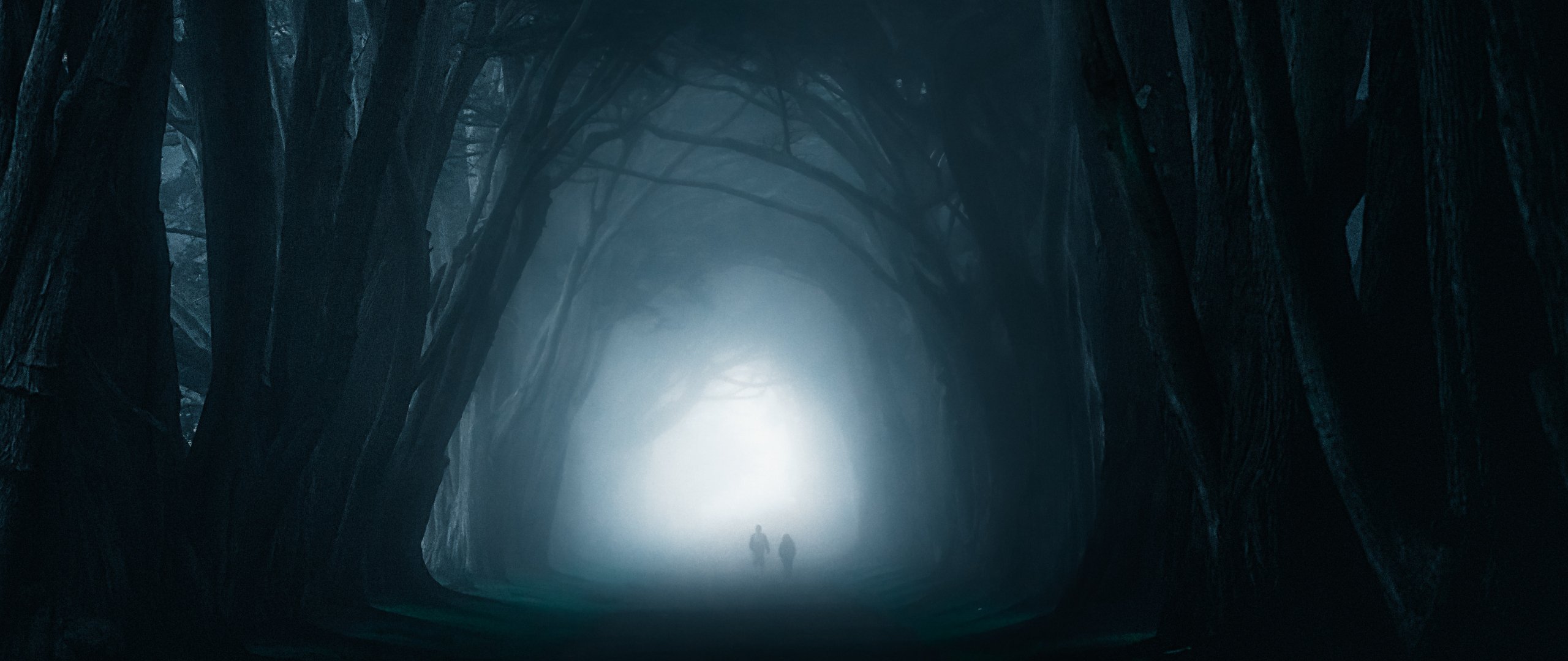 Обои: туман, лесная тропа - 2560x1080