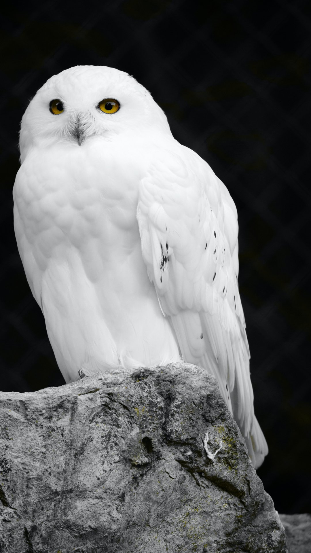 Обои: белая сова, черный фон - 1080x1920
