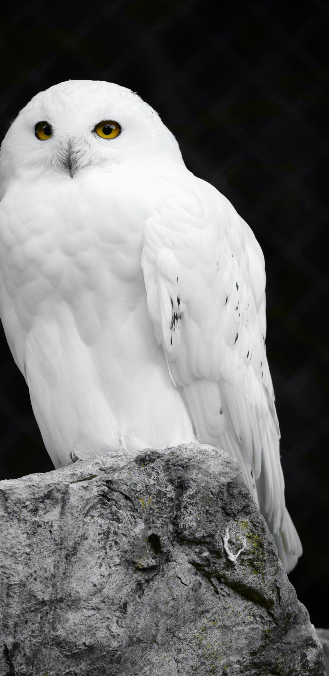 Обои: белая сова, черный фон - 1080x2220