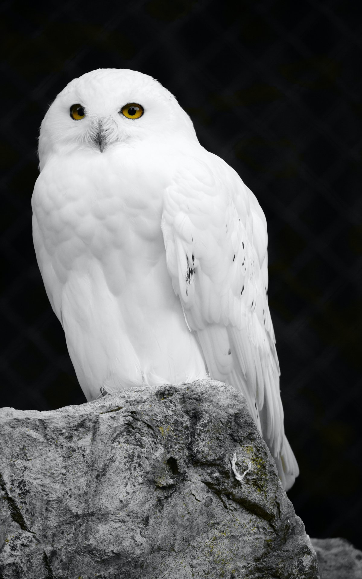 Обои: белая сова, черный фон - 1200x1920