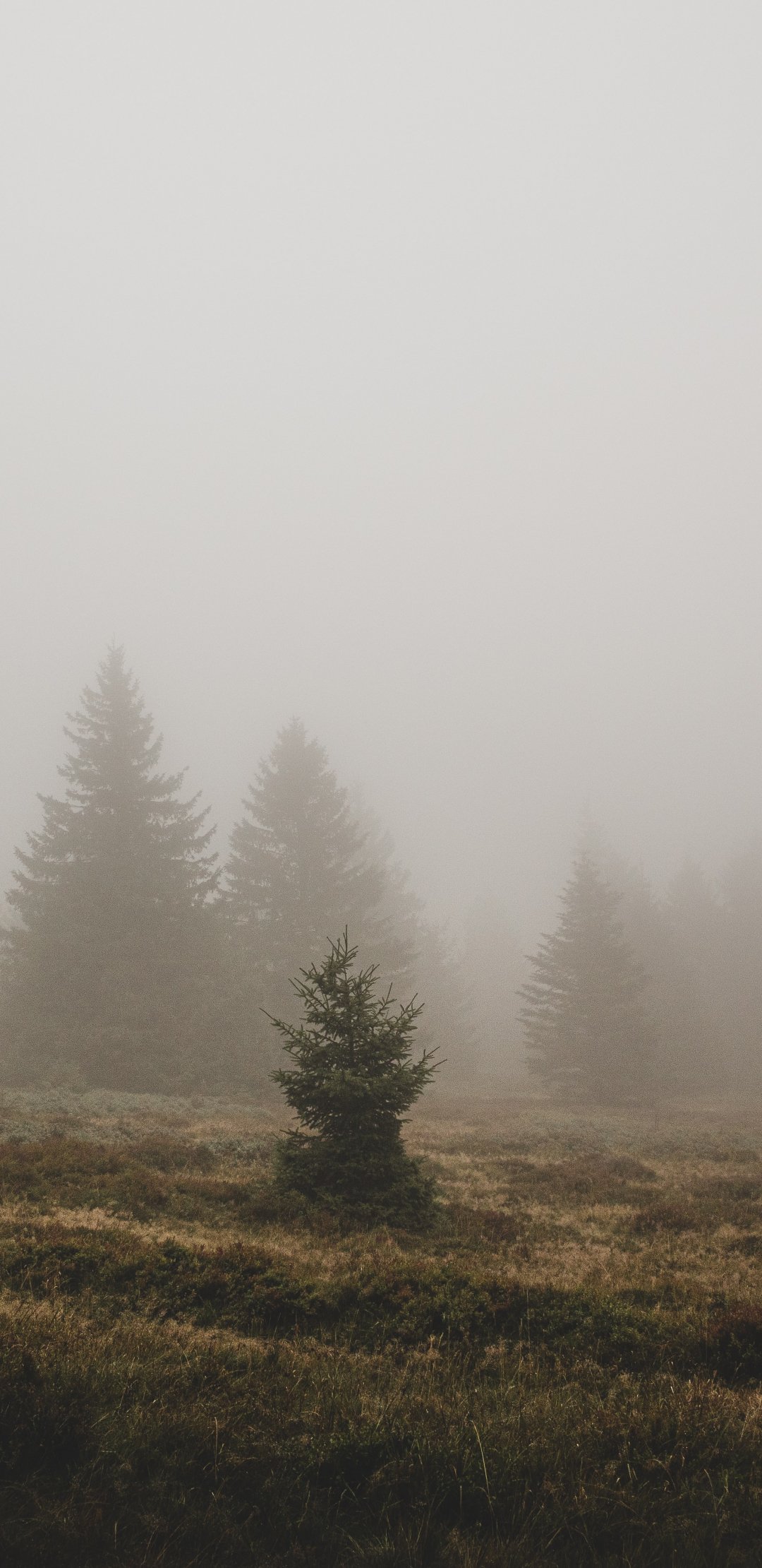 Обои: туман, ели - 1080x2220
