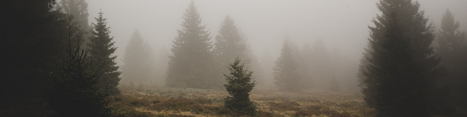 Обои: туман, ели - 1590x400