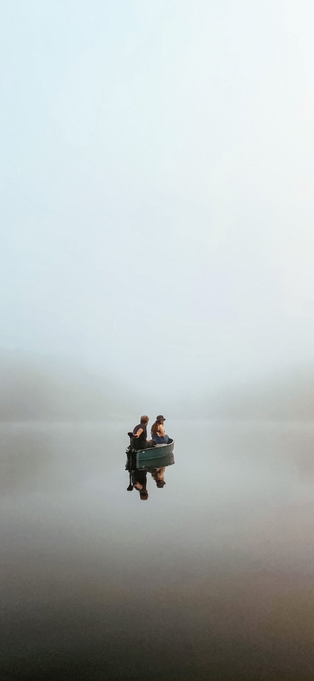 Обои: лодка, озеро, утро, человек - 1080x2340