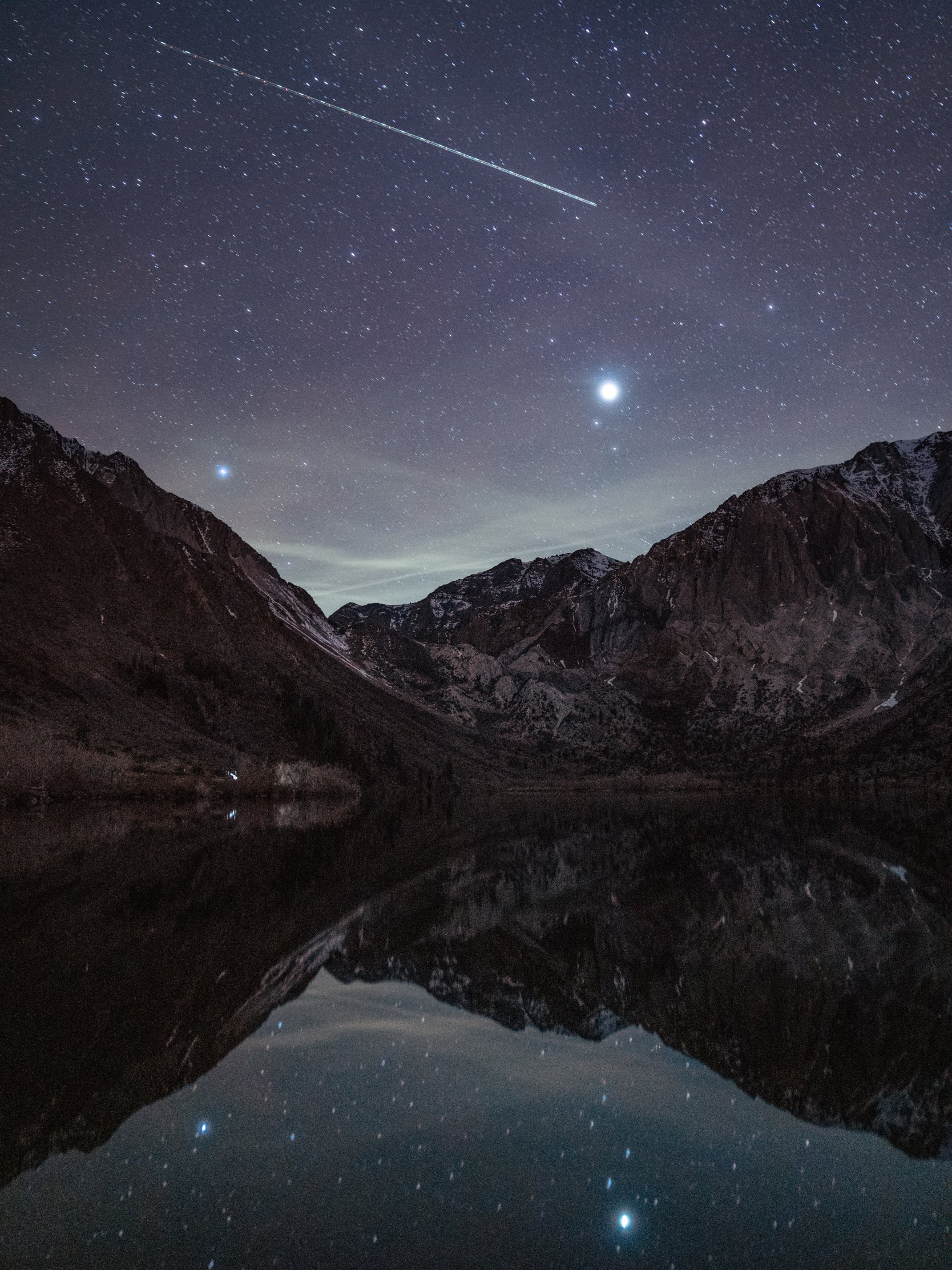 ночь, озеро, горы, вселенная