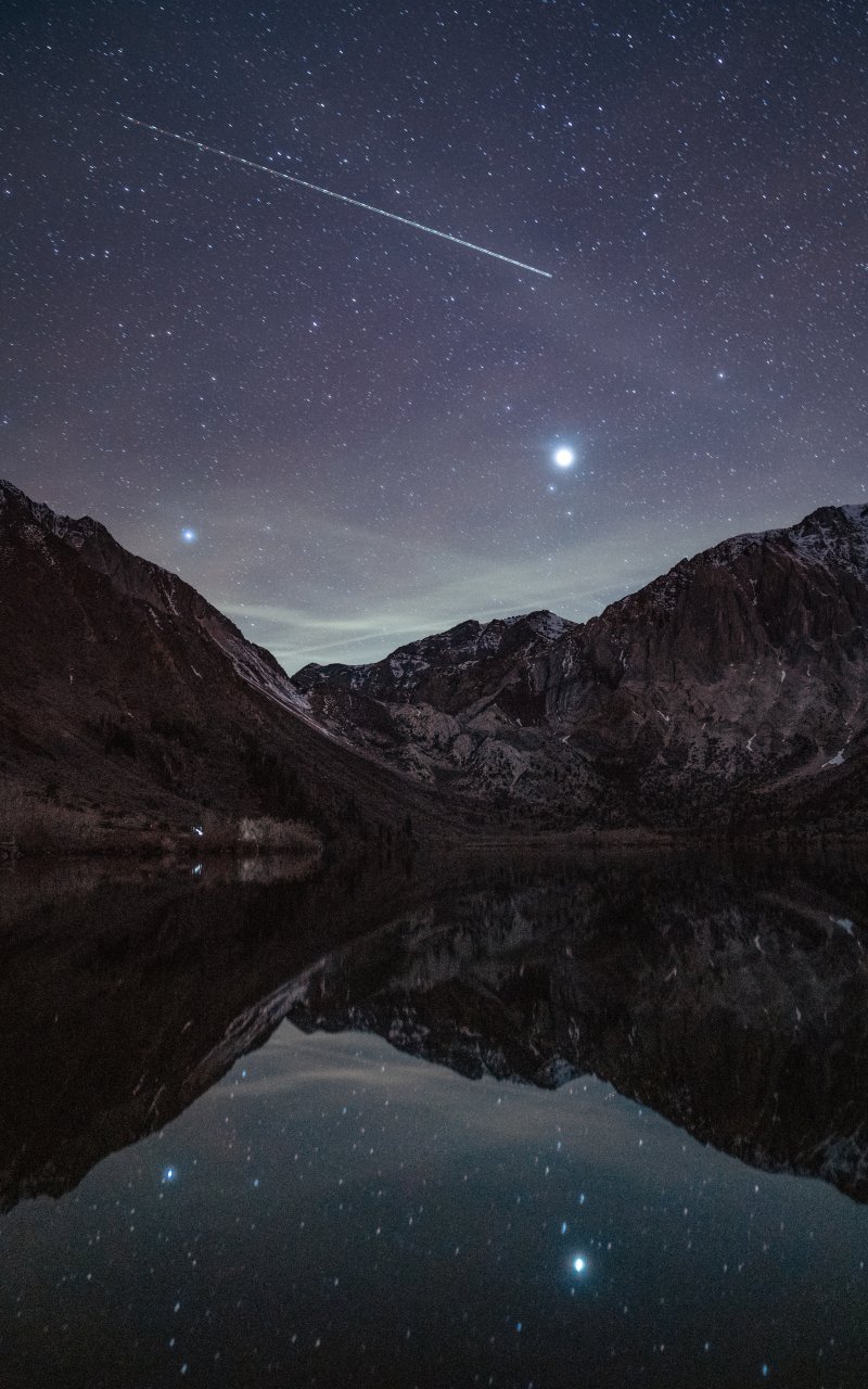 ночь, озеро, горы, вселенная
