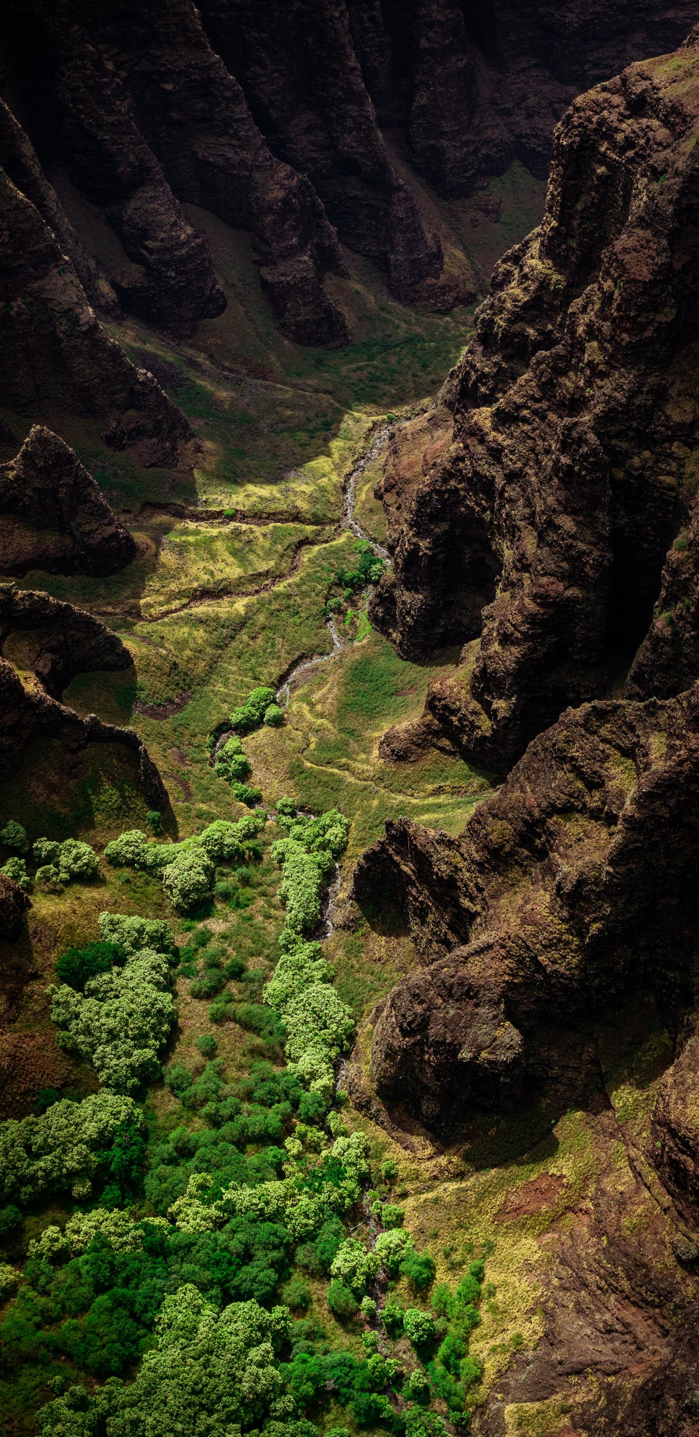 Обои: ущелье, горы, с высоты птичьего полета - 1440x2960