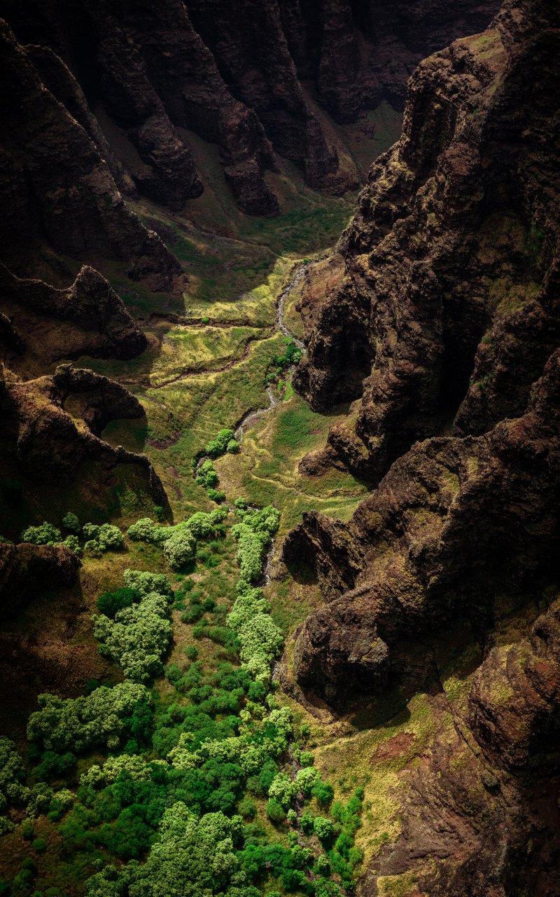 Обои: ущелье, горы, с высоты птичьего полета - 800x1280