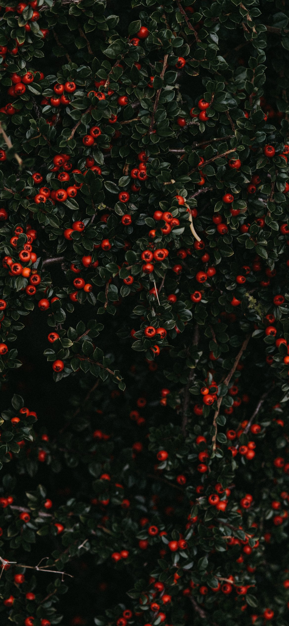 Обои: красные ягоды, листья - 1170x2532