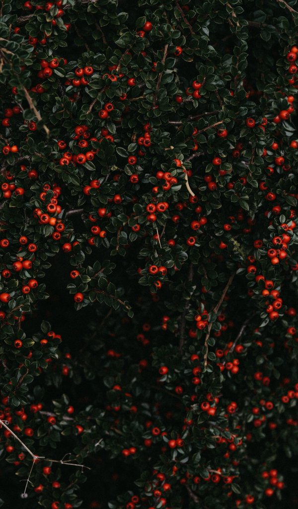 Обои: красные ягоды, листья - 600x1024