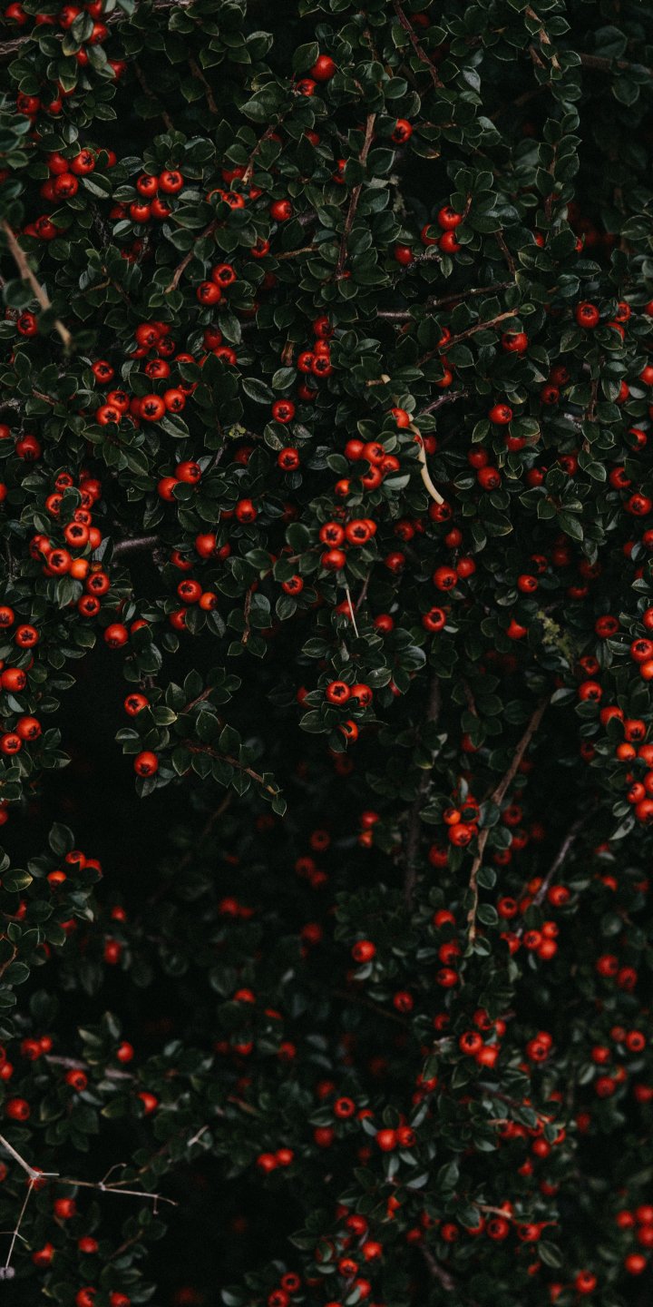 Обои: красные ягоды, листья - 720x1440