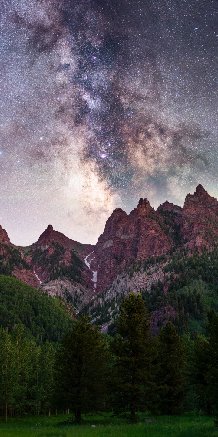Обои: млечный путь, горы, лес - 720x1440