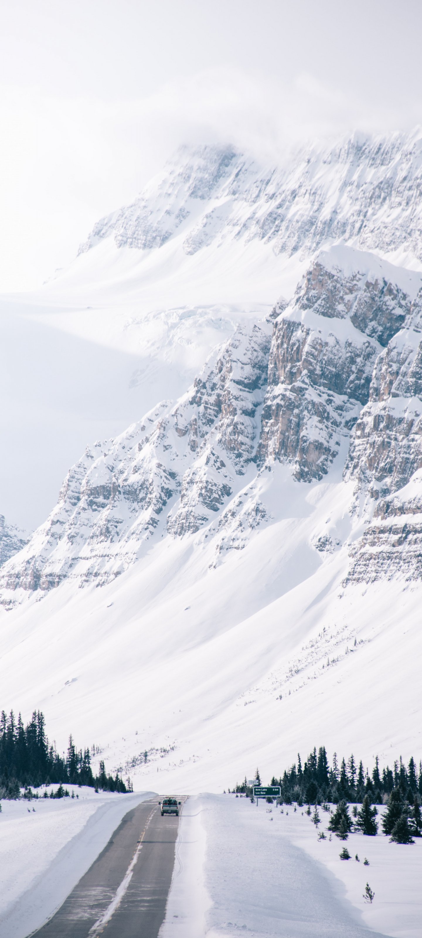 Обои: горы, дорога, снег - 1440x3200