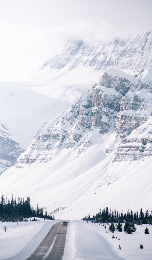 Обои: горы, дорога, снег - 600x1024