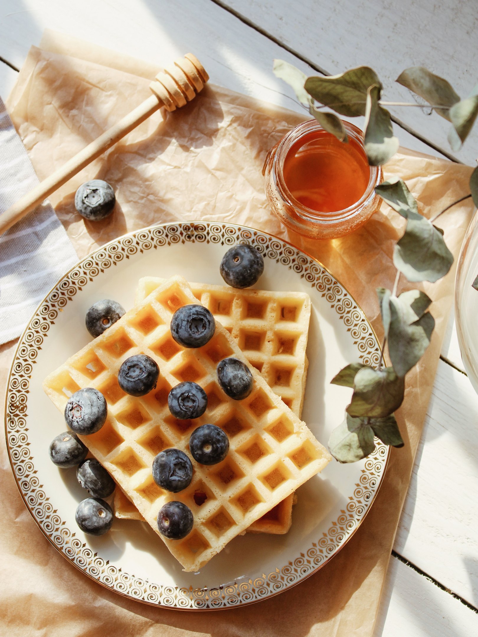 Обои: вафли, ягоды, мед - 1620x2160