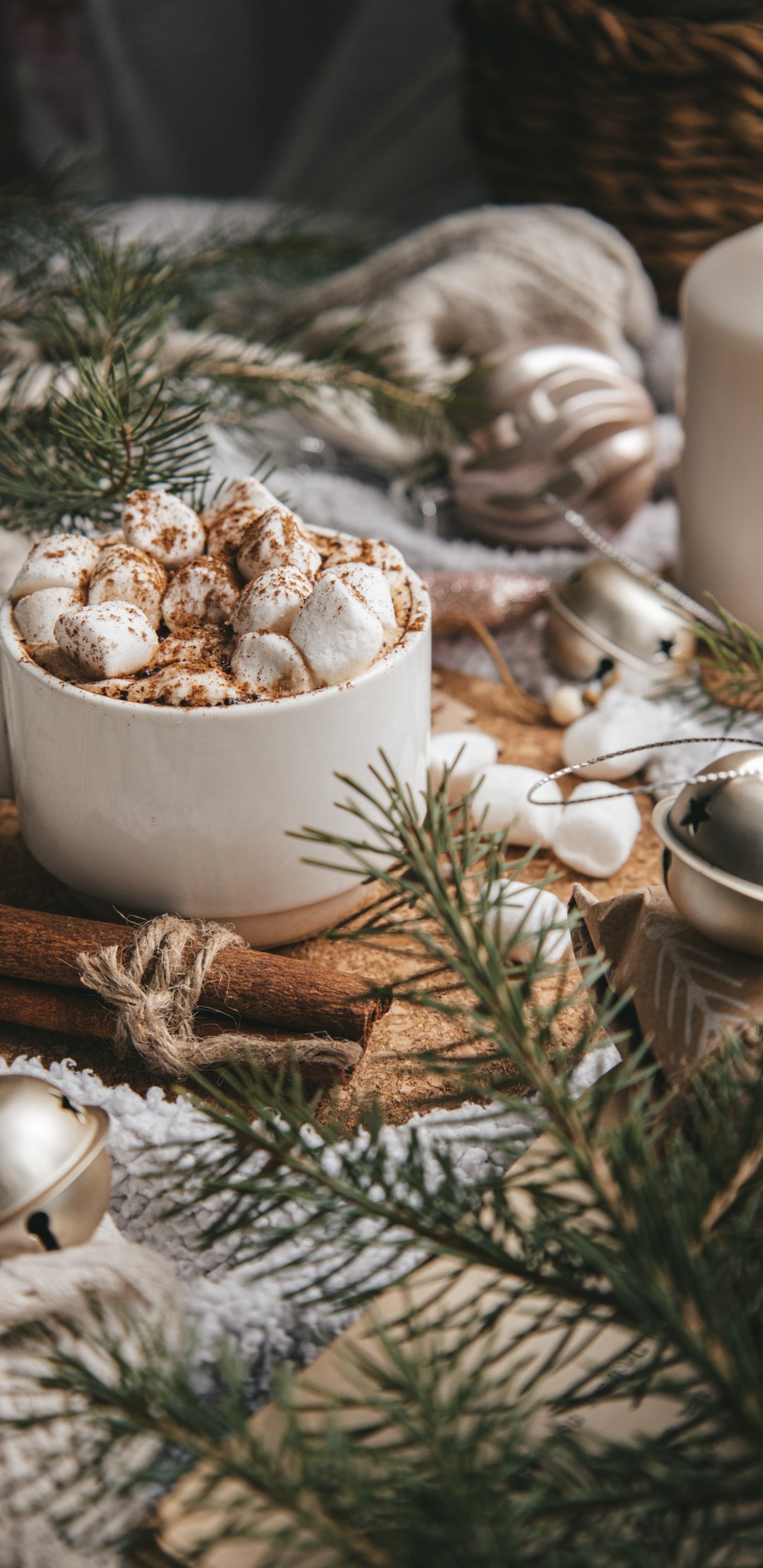 Обои: маршмэллоу, корица, какао - 1080x2220