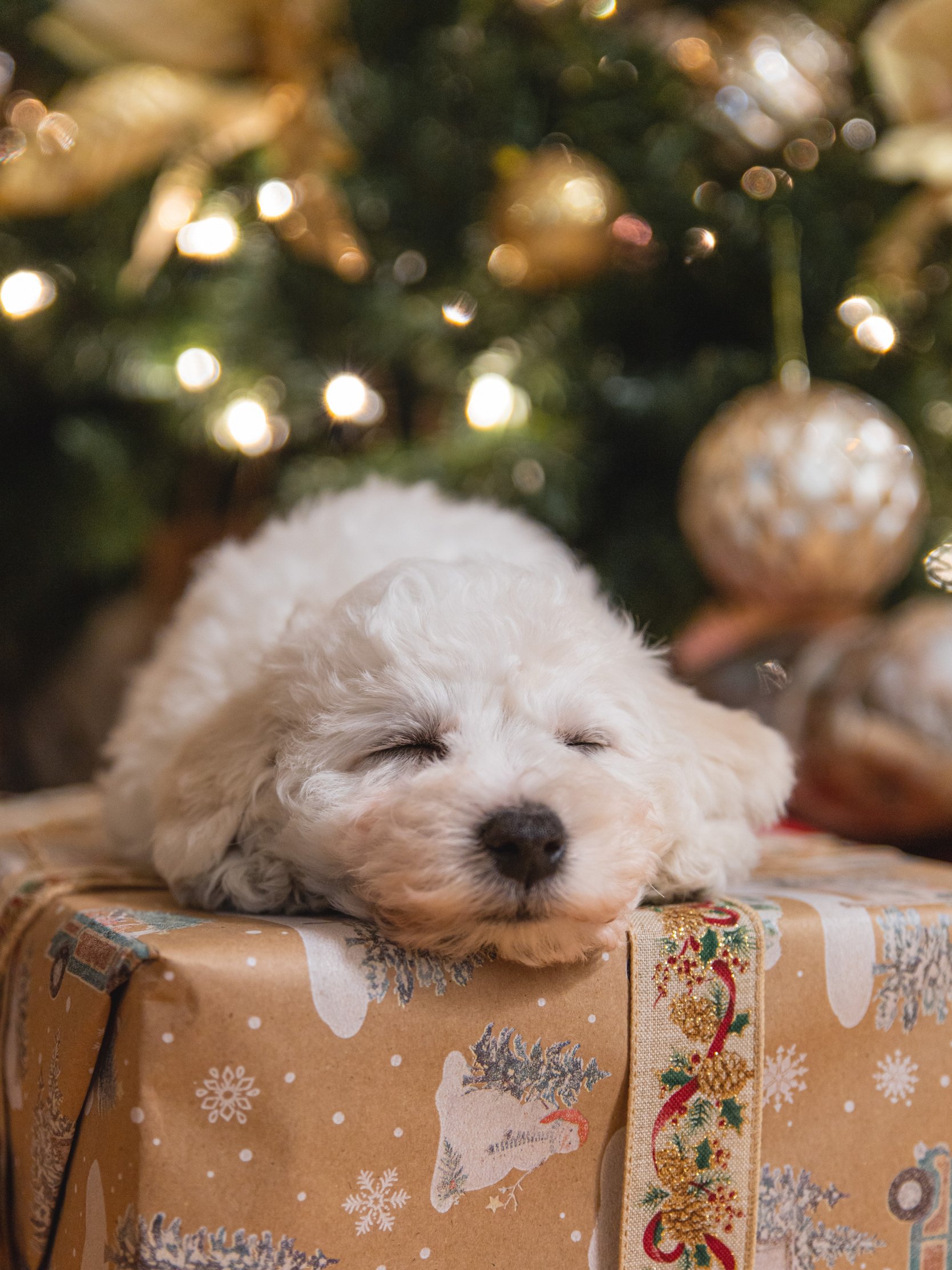 Обои: щенок, белый, новый год - 1668x2224